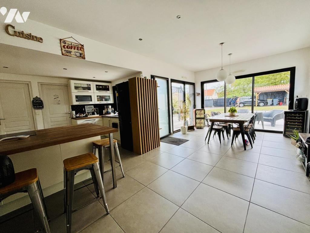 Maison de plain-pied, édifiée en 1950 et agrandie par la suite en 2013, en second rideau, en très bon état d’entretien. Elle se compose d’une vaste pièce de vie de 58 m², de quatre chambres, d'une lingerie, d’une salle de bains et d’un WC.
