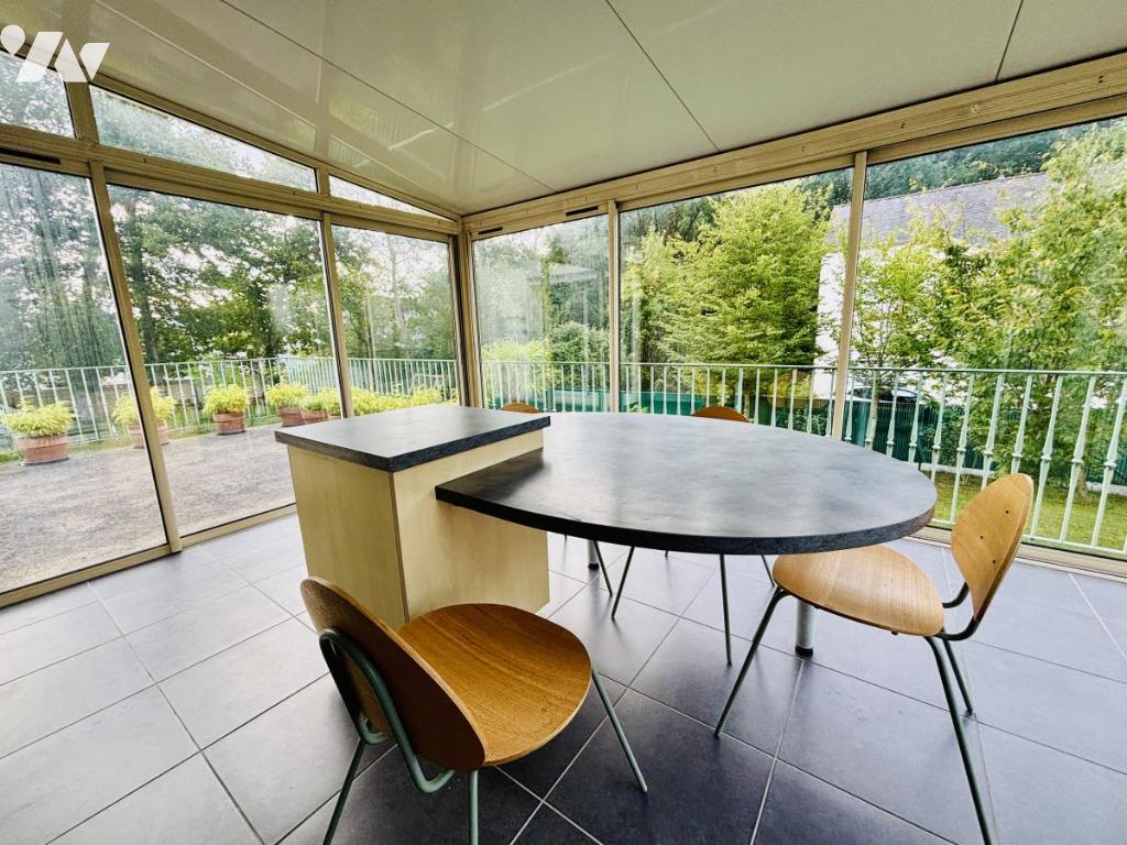 - A l'étage : Pièce de vie lumineuse avec poêle à bois, ouverte sur une cuisine aménagée et équipée, donnant accès à une véranda et une terrasse exposées au Sud. Trois chambres et une salle de bains avec WC.